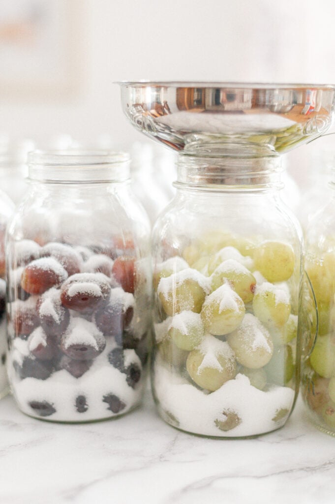 - Add sugar: Pour sugar directly over the grapes in each jar.