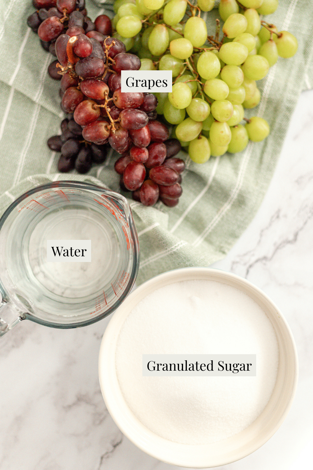 - Add sugar: Pour the sugar directly over the grapes.
